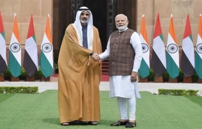 प्रधानमंत्री नरेंद्र मोदी ने नई दिल्ली में अबू धाबी के क्राउन प्रिंस शेख खालिद-बिन-मोहम्मद-बिन-जायद-अल-नाहयान से बातचीत की