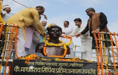 जिला चिकित्सालय मुरार में हुआ पूर्व केन्द्रीय मंत्री स्व. माधवराव सिंधिया की प्रतिमा का अनावरण
