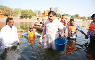 मुख्यमंत्री डॉ. यादव ने माँ क्षिप्रा के घाटों की सफाई कर जल गंगा संवर्धन अभियान में सहभागिता की