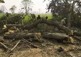भोजपुर रोड के 6 किमी में 200 पेड़ कटना शुरू:₹50 करोड़ से फोरलेन बनेगा