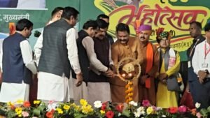 मुख्यमंत्री डॉ. यादव ने कहा कि लाड़ली बहनों के लिए सरकारी खजाने में कोई कमी नहीं है। प्रदेश सरकार को बहनों का आशीर्वाद मिल रहा है। प्रदेश की 1 करोड़ 25 लाख 27 हजार लाड़ली बहनों को साढ़े 1800 करोड़ से अधिक की राशि प्रदान की है। मुख्यमंत्री लाड़ली बहना योजना के 3 वर्ष पूरे होने जा रहे हैं और सभी पात्र हितग्राहियों को हर माह 1500 रुपए की सौगात मिल रही है। ग्रामीणों के सिर पर पक्के मकान की छत मिले, इसके लिए बहुत जल्द सर्वे शुरू किया जाएगा। सड़क हादसों में घायलों की मदद के लिए सरकार ने ‘राहवीर योजना’ की शुरुआत की है। घायल को अस्पताल पहुंचाने वाले को सरकार 25 हजार की प्रोत्साहन राशि दी है। पीएम राहत योजना के तहत अस्पताल में घायल के लिए डेढ़ लाख रुपए तक के नि:शुल्क इलाज की व्यवस्था है। नागरिकों की जान बचाने के लिए एयर एम्बुलेंस का नवाचार प्रारंभ किया गया है। मुख्यमंत्री डॉ. यादव ने कहा कि किसानों की समृद्धि के लिए राज्य सरकार सिंचाई के लिए पर्याप्त जल, बिजली और जरूरी सुविधाएं उपलब्ध करा रही है। प्रदेश में वर्ष 2004 से अब तक गेहूं के मूल्य में 2000 रुपए प्रति क्विंटल से अधिक की वृद्धि हुई है। किसानों को बोनस का लाभ देकर इस वर्ष 2625 रुपए प्रति क्विंटल गेहूं खरीदा जा रहा है। प्रदेश में पिछले 2 वर्ष में सिंचाई का रकबा बढ़कर 55 लाख हैक्टेयर हो गया है, जिसे आगामी वर्षों में 100 लाख हैक्टेयर करने का लक्ष्य रखा गया है। किसानों को सालभर में 12 हजार रुपए की सम्मान निधि का लाभ दिया जा रहा है।