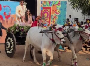 बैलगाड़ी, शहनाई, परंपरागत वाद्य, गाँव की झलक… यह सब मिलकर ऐसा प्रतीक बना मानो समारोह यह कह रहा हो कि भारतीय संस्कृति का असली सौंदर्य भव्यता नहीं बल्कि उसकी सरलता और पारिवारिक अपनत्व में है।